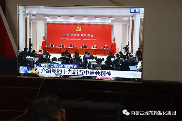 1030日上午,雅盐化集团公司组织团公司中层以上管理人员及机关工作人员,集中收看了中共中央新闻发布会,第一时间学习党的十九届五中全会精神