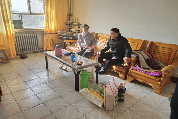 雅盐化集团公司党委副书记、总经理李奎锦来到职工王尚军家中,为其送上慰问品,代表集团公司向他致以春节的问候,并详细询问了他及家属的身体状况、生活近况及子女工作情况等,对他一年来兢兢业业工作表示感谢。